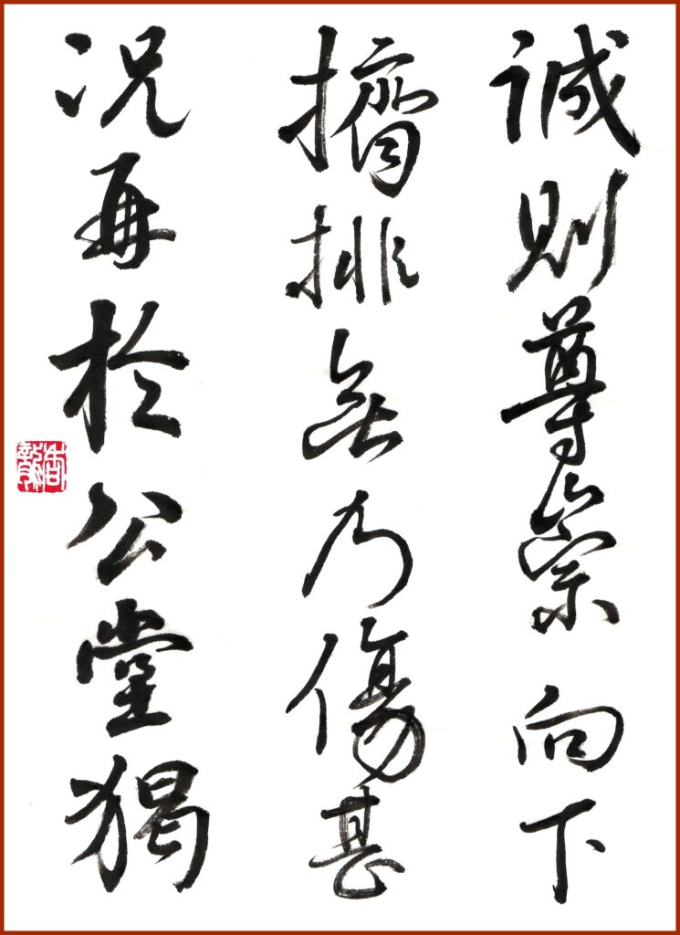 こちらは、顔真卿が764年に書いた争座位帖の一部を手本にして、私が半紙に書いたものです。