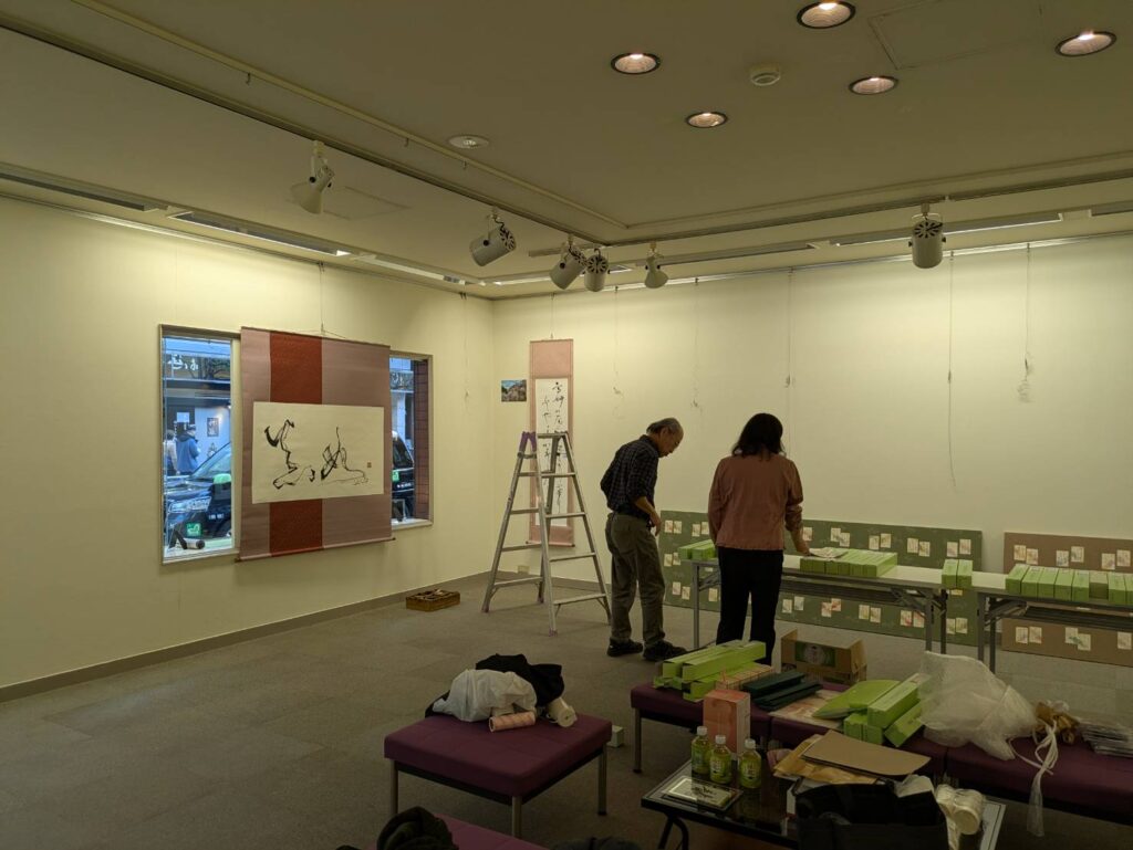 12月8日(月)朝11時から、表具屋さんと私と夫とで陳列開始。