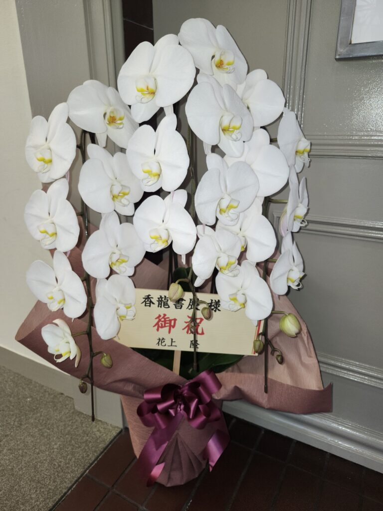 準備をしていると、花屋さんが大きな段ボールを。夫と二人がかりで開封していると、また花屋さんが届けてくれて・・・。