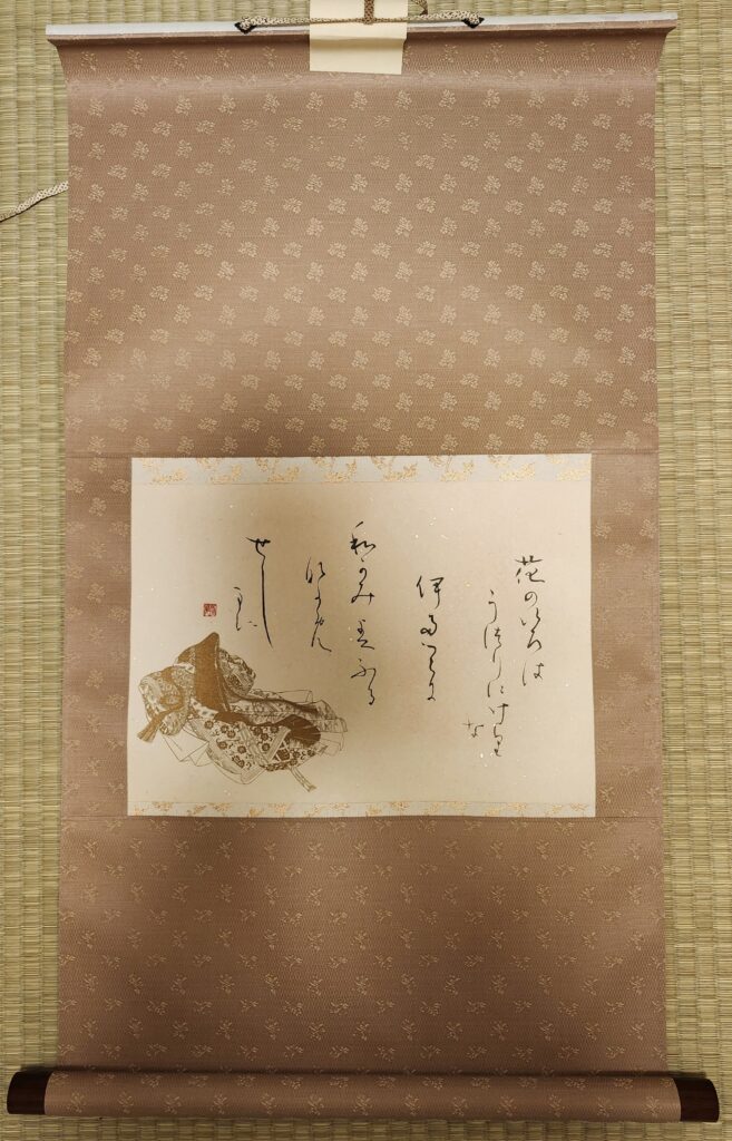 解釈:桜の花の色はすっかり色あせてしまったなぁ。春の長雨が降って、私が恋や世間のもろもろのことに思い悩んでいるうちに。(同じように私の美しさもすっかり衰えてしまった)