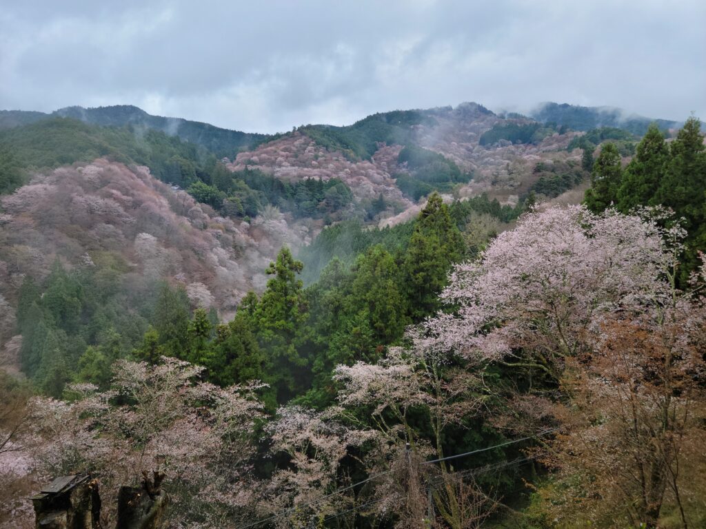 現代語訳:遠くにある高い山の、頂にある桜も美しく咲いたことだ。人里近くにある山の霞よ、どうか立たずにいてほしい。美しい桜がかすんでしまわないように。